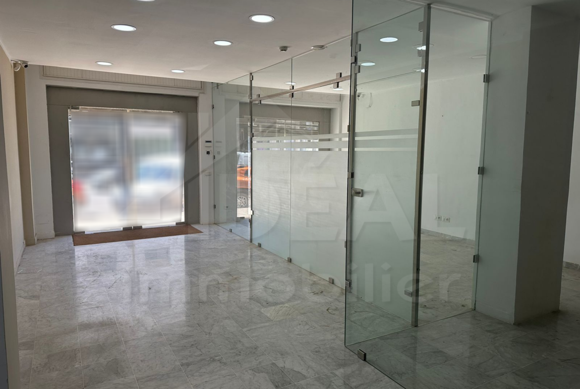Le local est érigé sur deux niveaux, et jouit d’un emplacement stratégique bénéficiant d’une forte visibilité (tout près du Lac Palace).