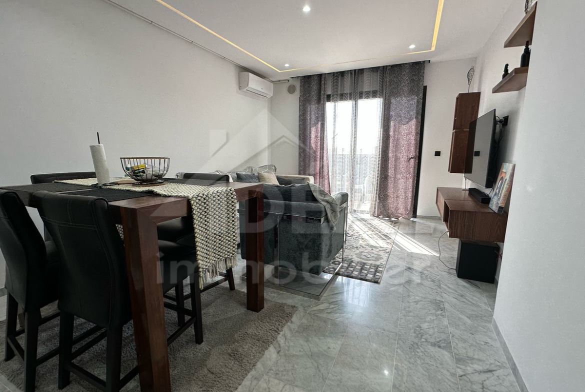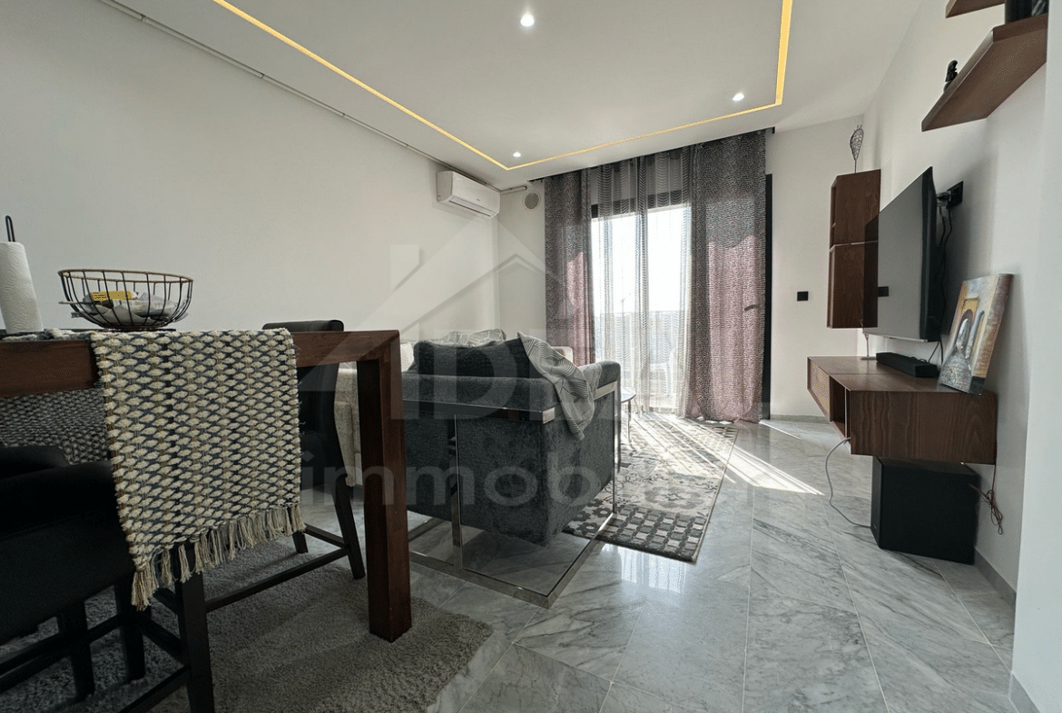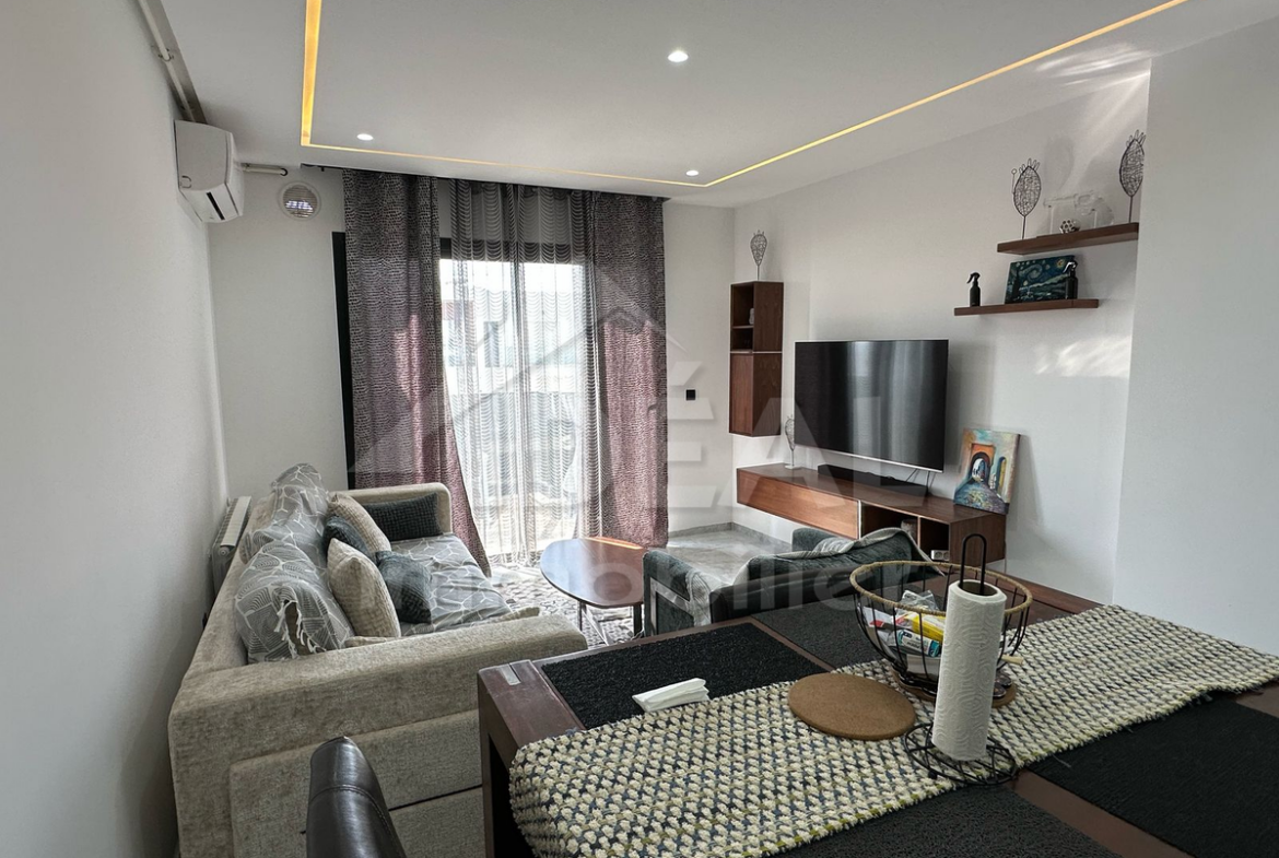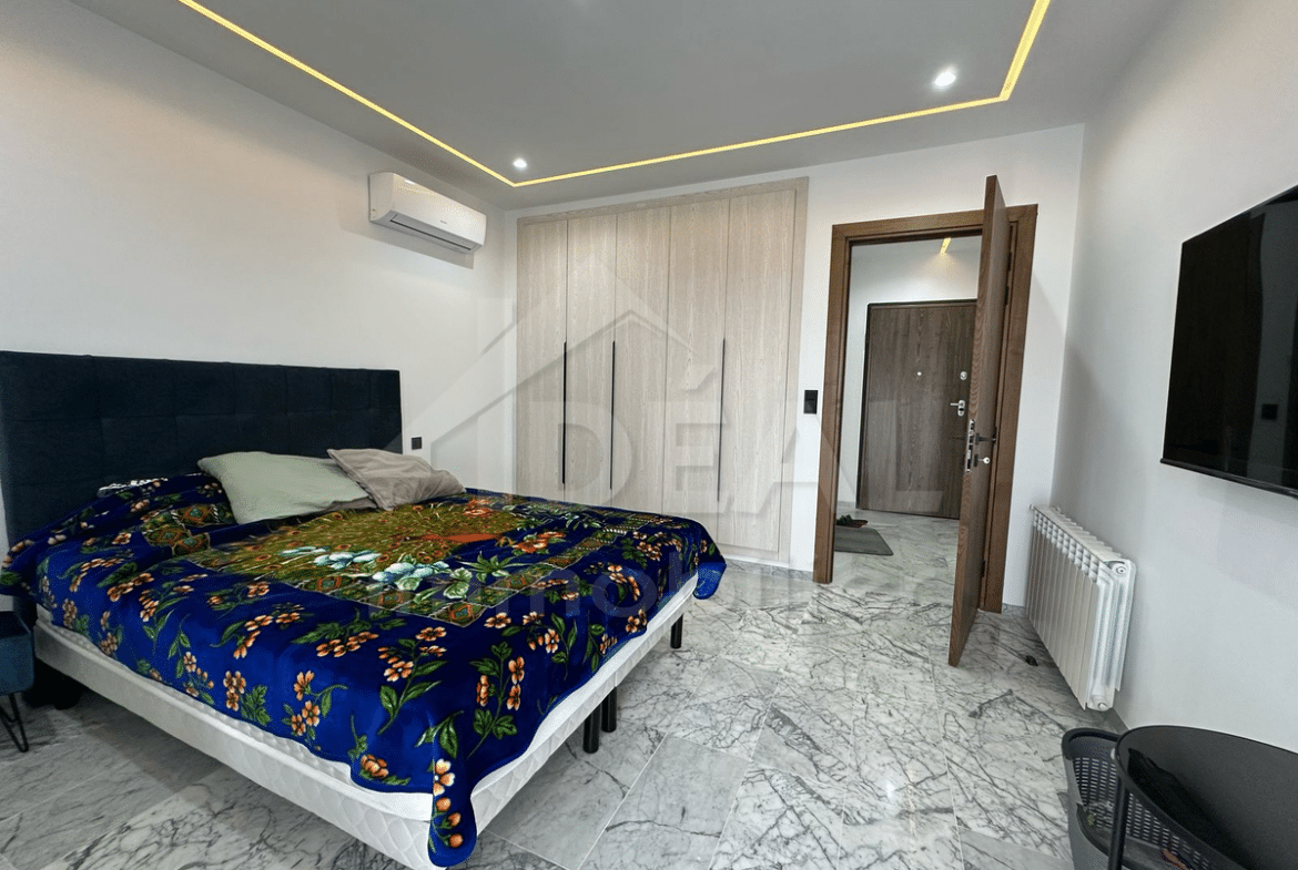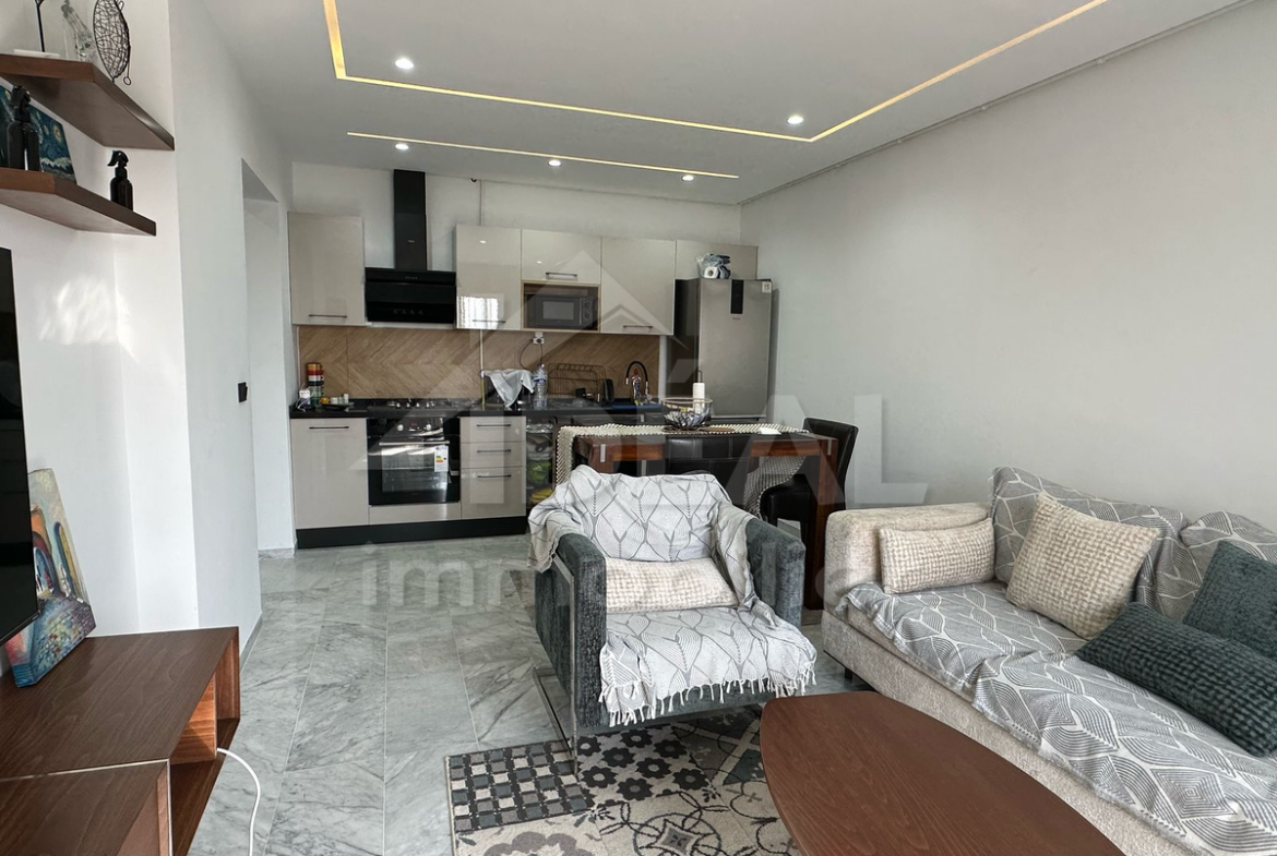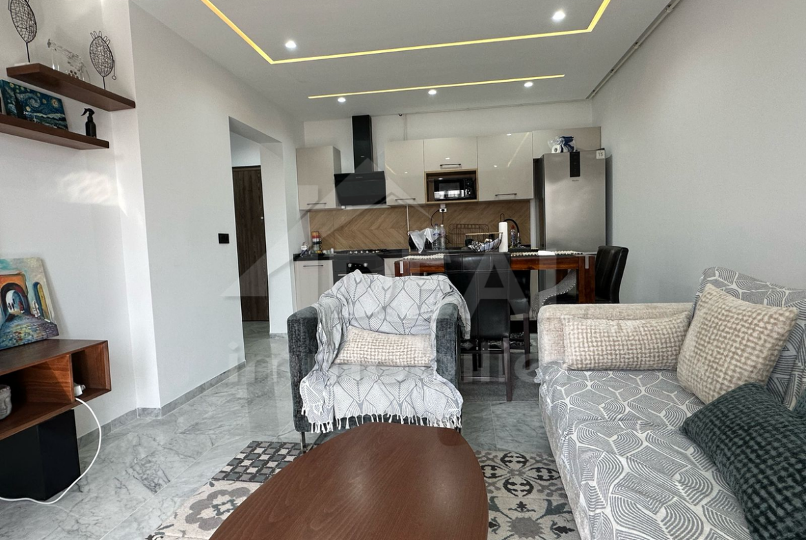 L’appartement se compose d’un salon lumineux avec un balcon, d’une cuisine ouverte offrant un accès fluide à la pièce de vie, d’une chambre lumineuse avec balcon privé, ainsi que d’une salle de bain moderne.