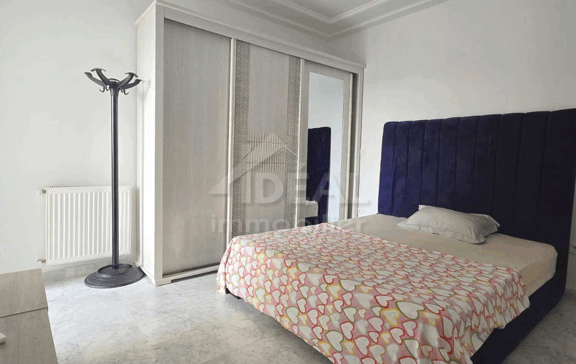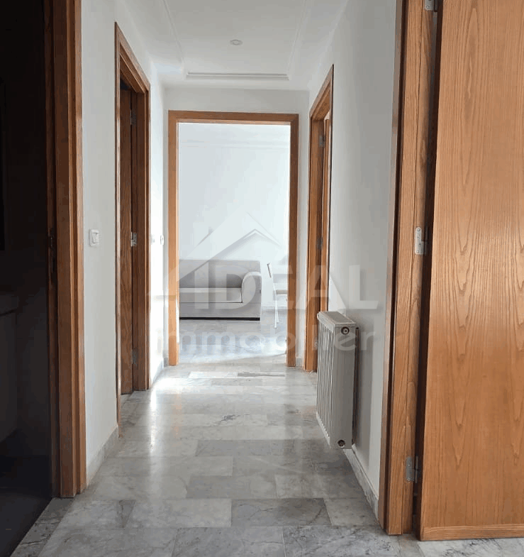 L’agence Idéal Immobilier vous propose à la location un appartement S+2 non meublé, situé au 4ème étage d’une résidence sécurisée aux Jardins de Carthage.