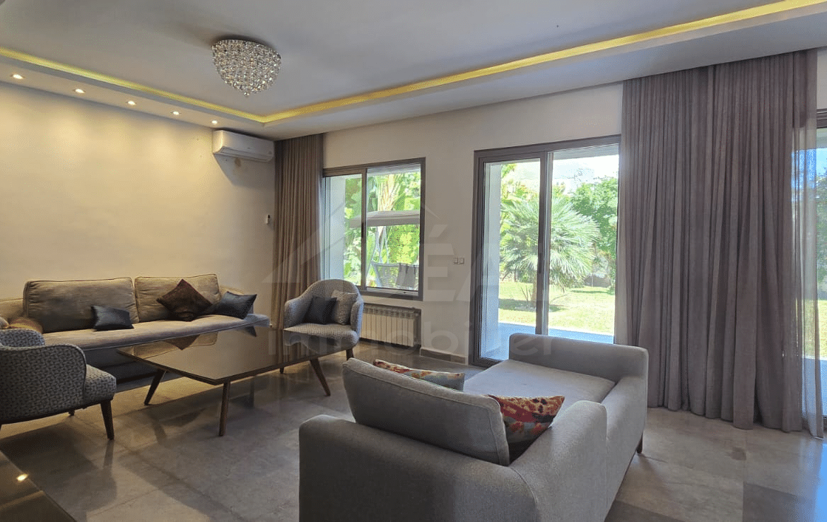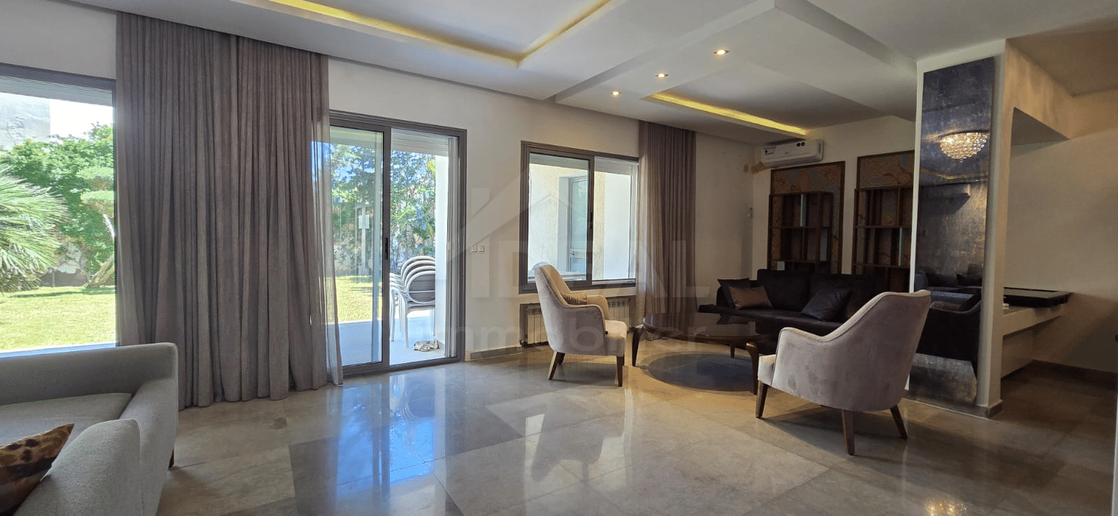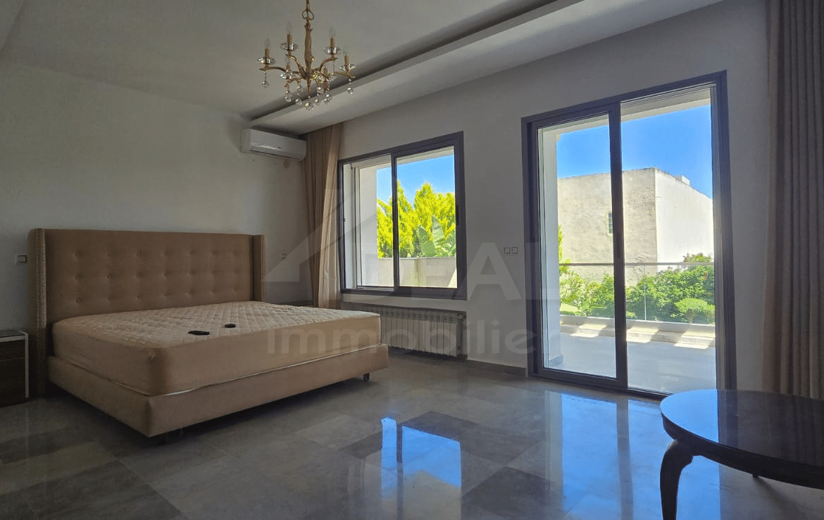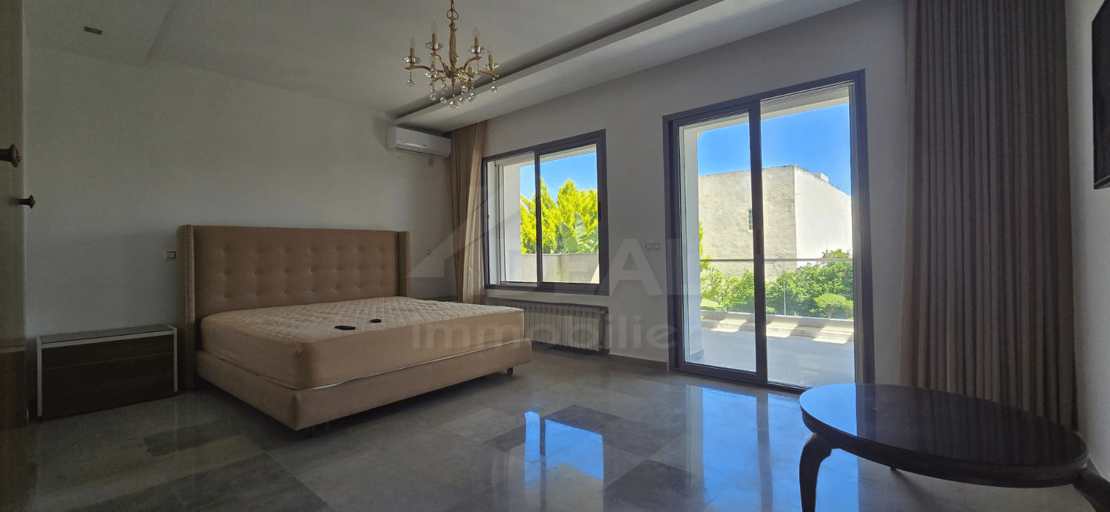 Idéal Immobilier vous propose à la location longue durée une villa meublée, située à Gammarth Village, dans un environnement calme et résidentiel.