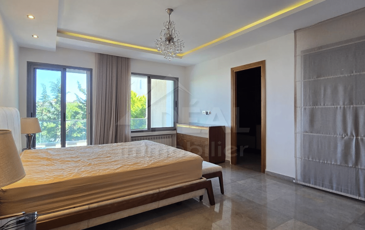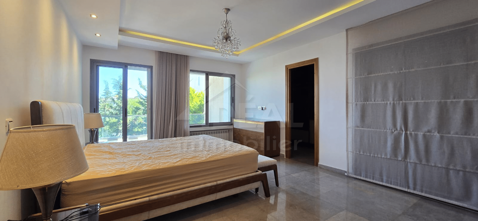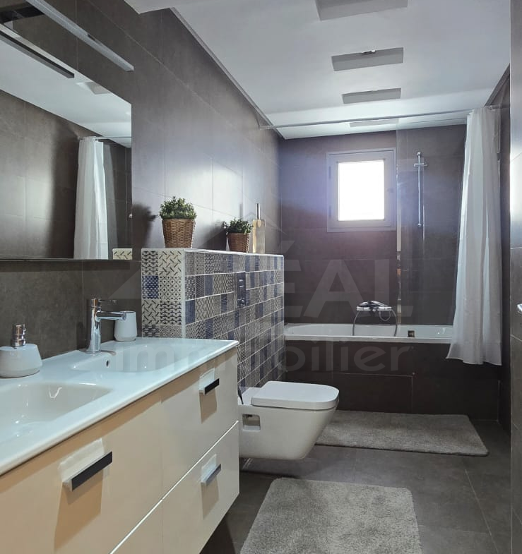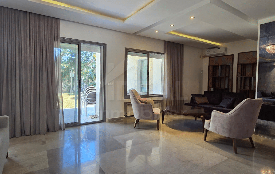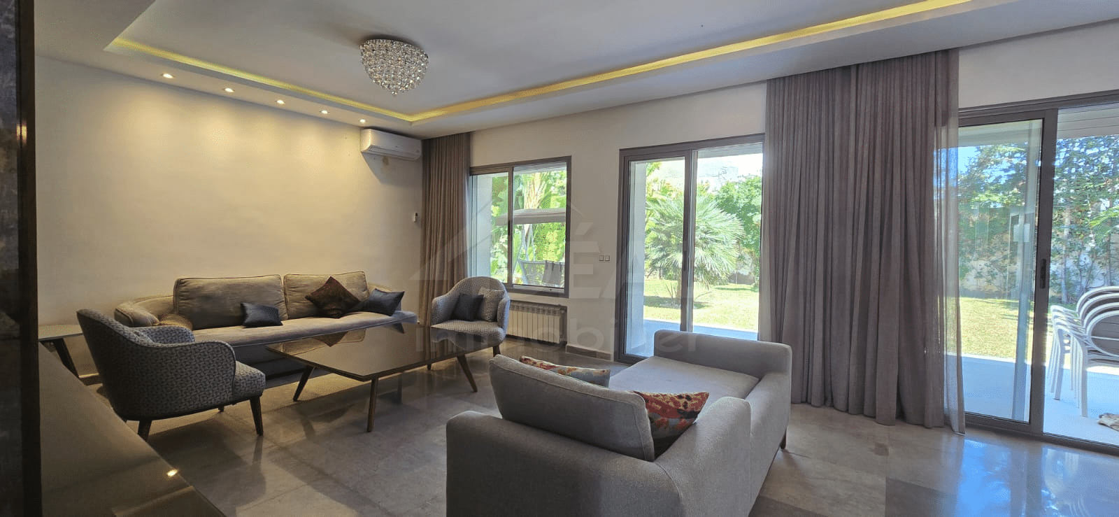 Idéal Immobilier vous propose à la location longue durée une villa meublée, située à Gammarth Village, dans un environnement calme et résidentiel.